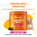 - Shiny Coats – The Omega fatty acids in each chew provide nutrients that help dogs achieve a soft, silky, shiny, and healthy coat.