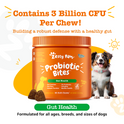 - Probiotic Bites help support microflora for occasional gastric distress (constipation, indigestion, gas, bloating) and support digestive tract health for your doggie.