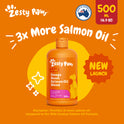 The Zesty Paws Omega Boost Salmon Oil Blend has 3x more salmon oil than the Wild Alaskan Salmon Oil Formula and is a premium oil-based supplement designed to turn mealtime into a moment of nourishment and delight. Made with 90% premium Salmon Oil and enriched with a balanced blend of concentrated fish oil and linseed oil, this Omega-3 powerhouse has anti-inflammatory properties to support healthy skin.